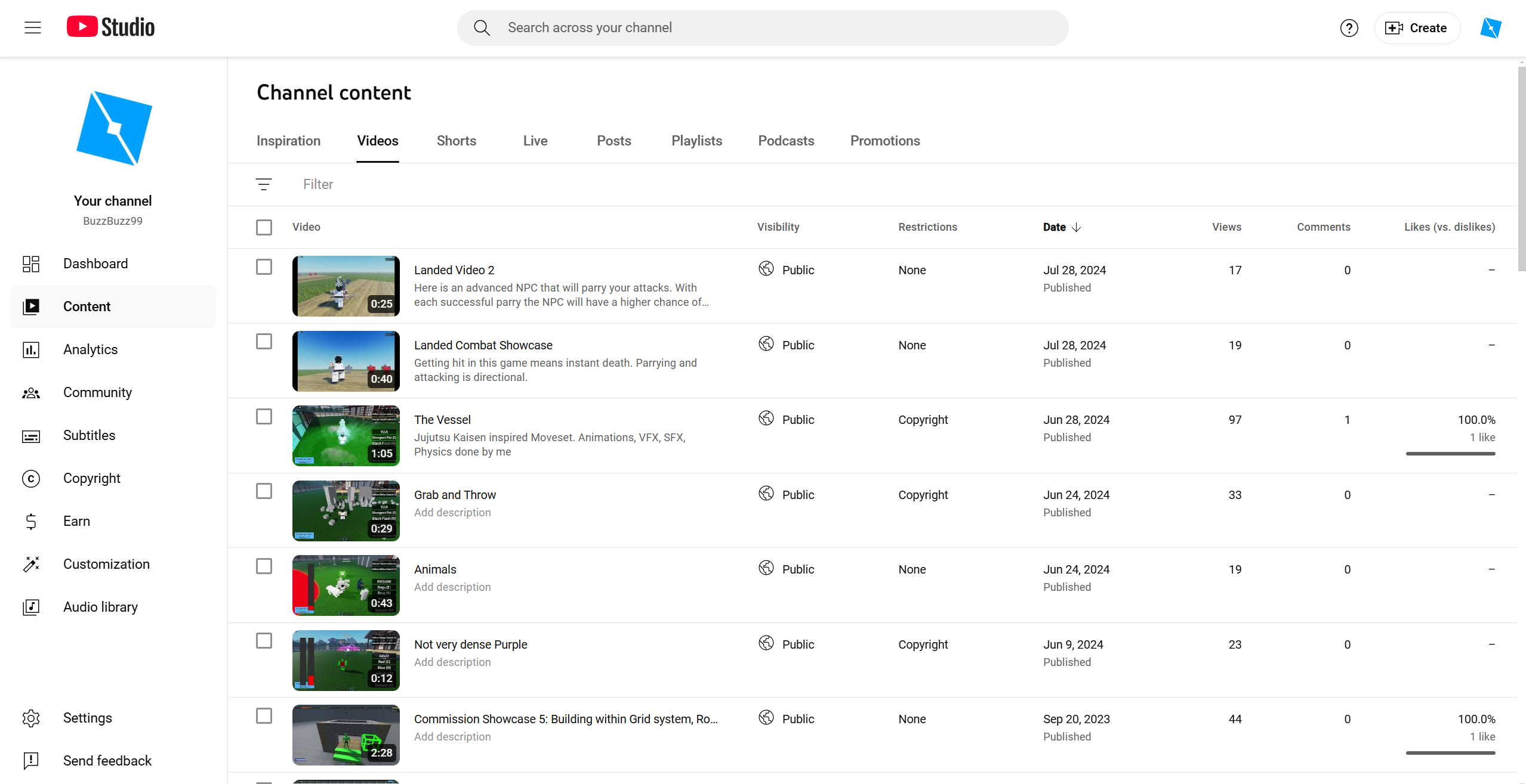 A youtube portfolio of my various creations throughout years of developing on roblox